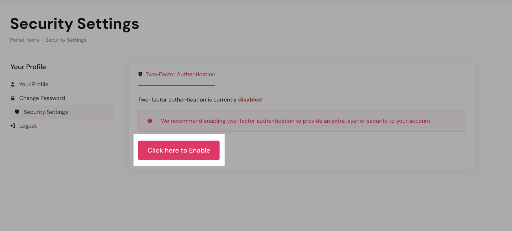 You can enable Two-Factor (2FA) authentication on your customer portal account.