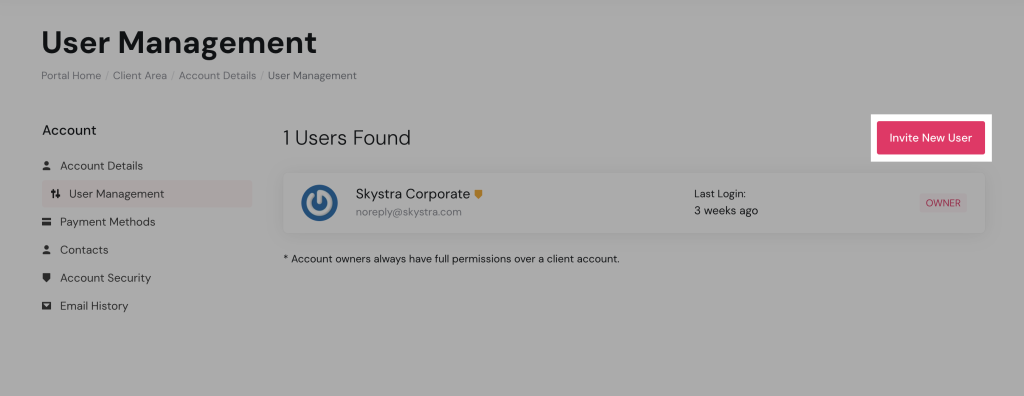 3. You will see your own user listed by default. To add the new user, click on the Invite New User button.