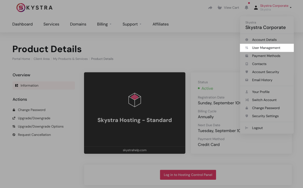 You can provide access to your hosting account using a tool called User Management. This is a helpful and secure tool for providing website developers, website designers or any external user access to your hosting account.