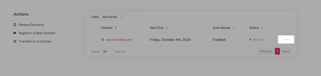 3. Find your domain name and click the 3 dots … to the right of it