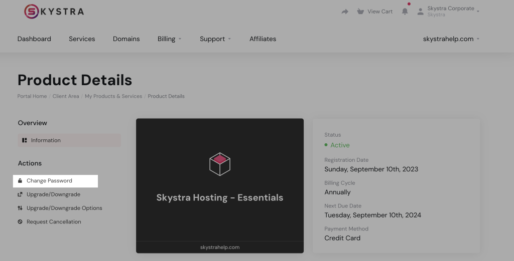 3. Click on Change Password under Actions