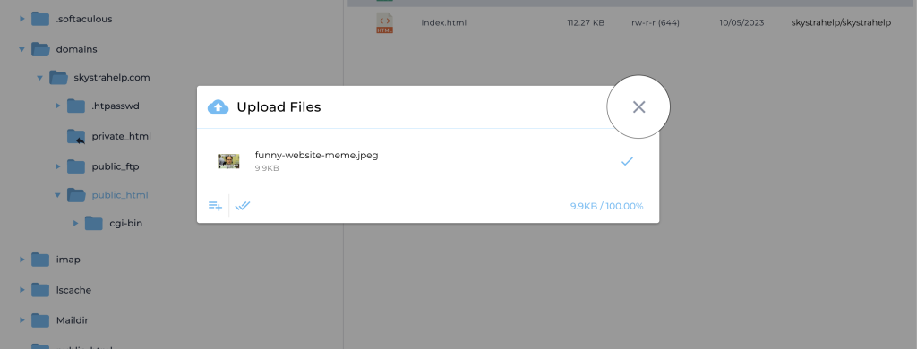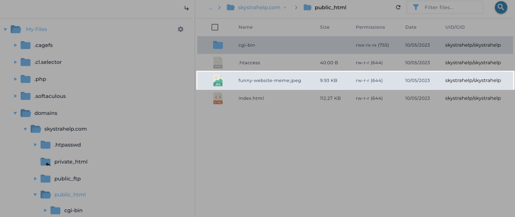 9. You will now see your uploaded file in your domain name’s public_html folder.