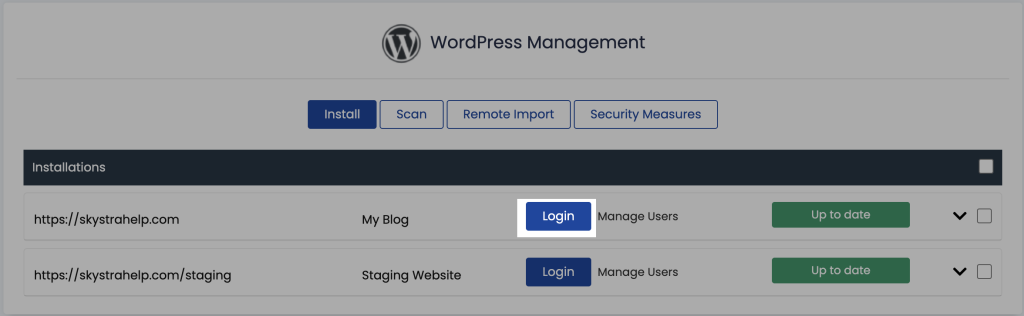 9. Once reviewed, return to your WordPress Management dashboard