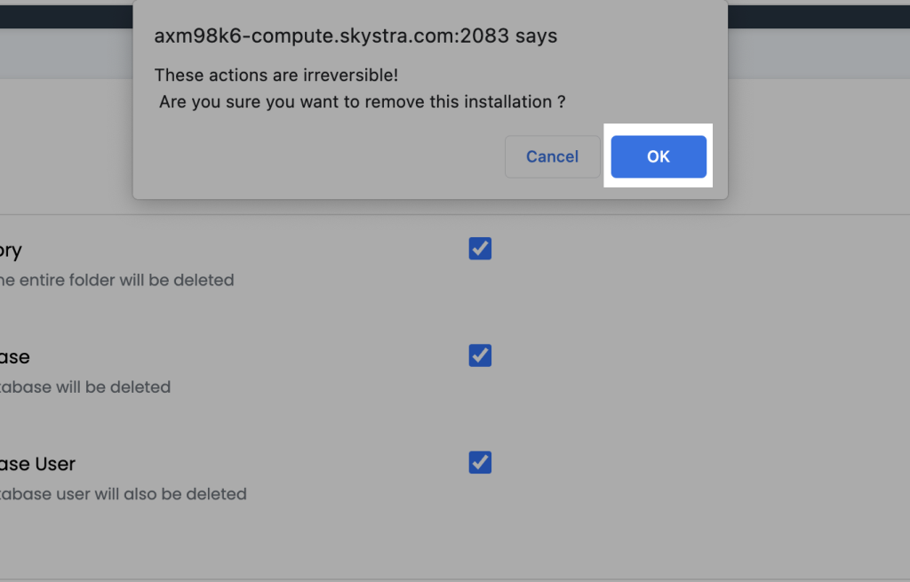 16. On the Are you sure you want to remove this installation? click the OK button