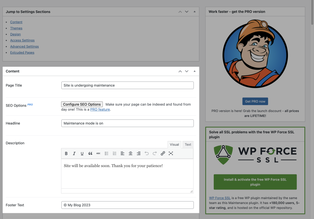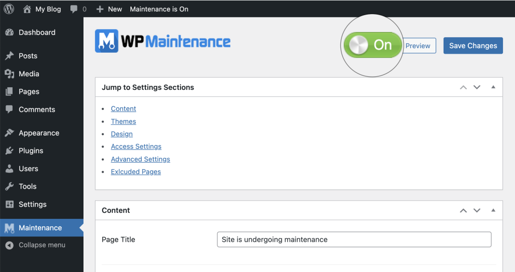 7. Enable maintenance mode by toggling the enable setting within the plugin’s dashboard