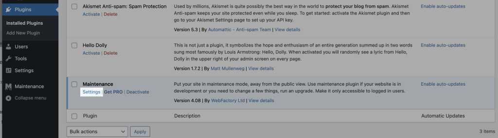 4. Activate the Maintenance plugin
