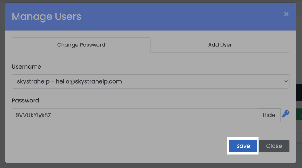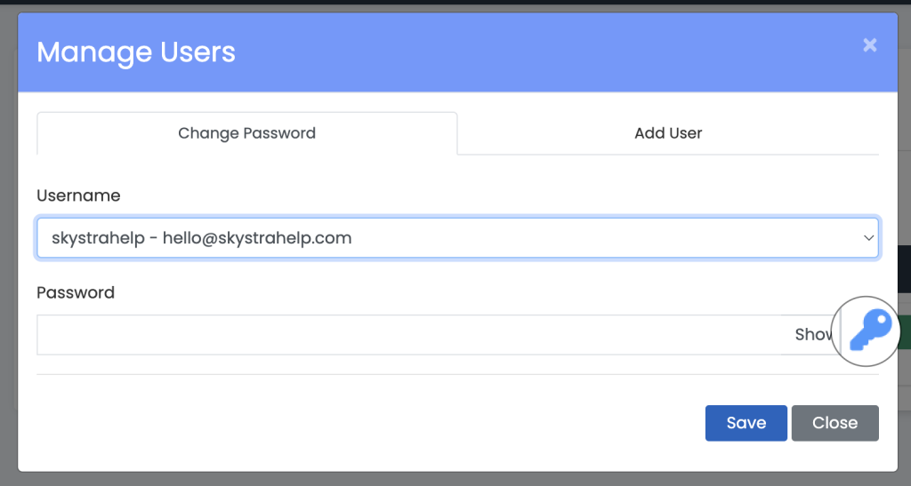 5. Click the key icon 🔑 next to the password field to generate a secure password