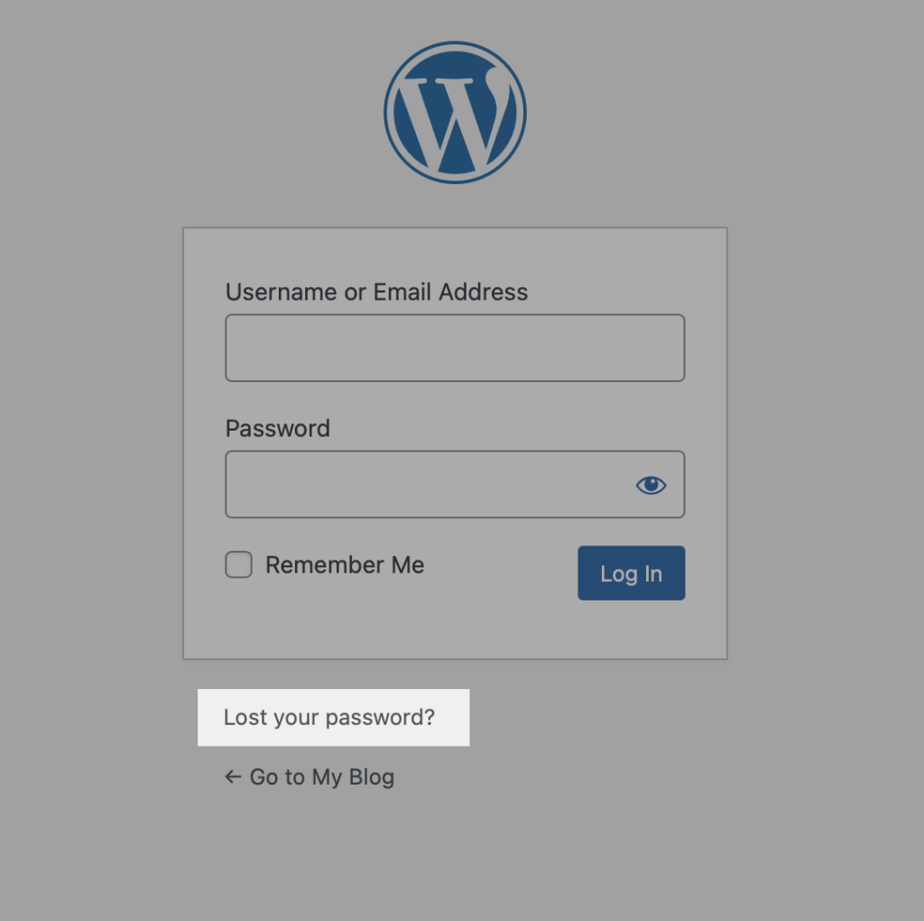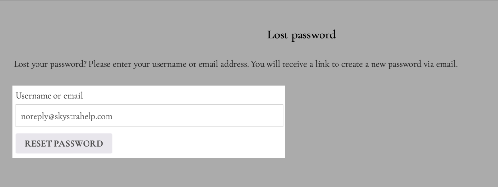 4. Enter the email address associated to your WordPress admin user and click the Reset Password button