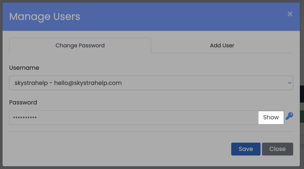 6. Click on Show in the password field to reveal your password and then note it down somewhere secure